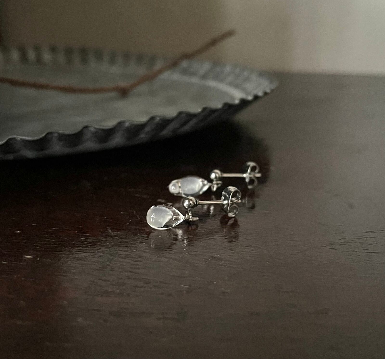 耳元でふるふる揺れる小さな一粒ピアス。
