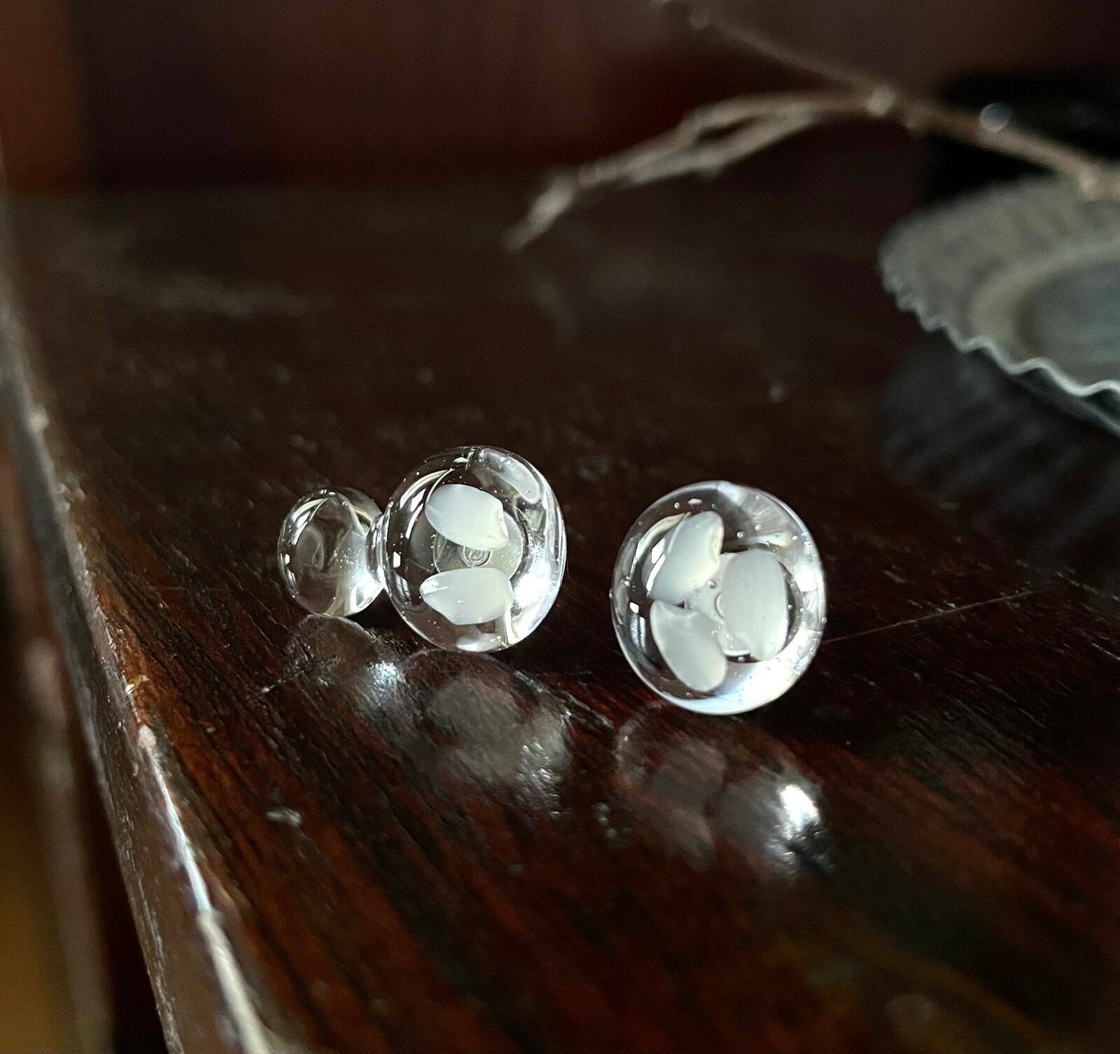 天候や使用モニターなどにより写真と実物の見え方に差が出る場合がございます。レジンの気泡は美しさの要素と考え残しています。