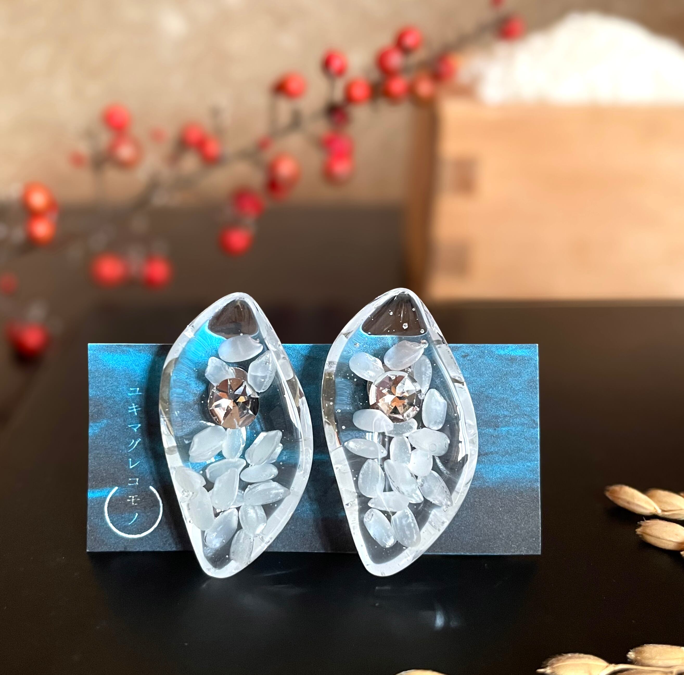 こちらはお米を内包した大ぶりの一粒ピアスです。