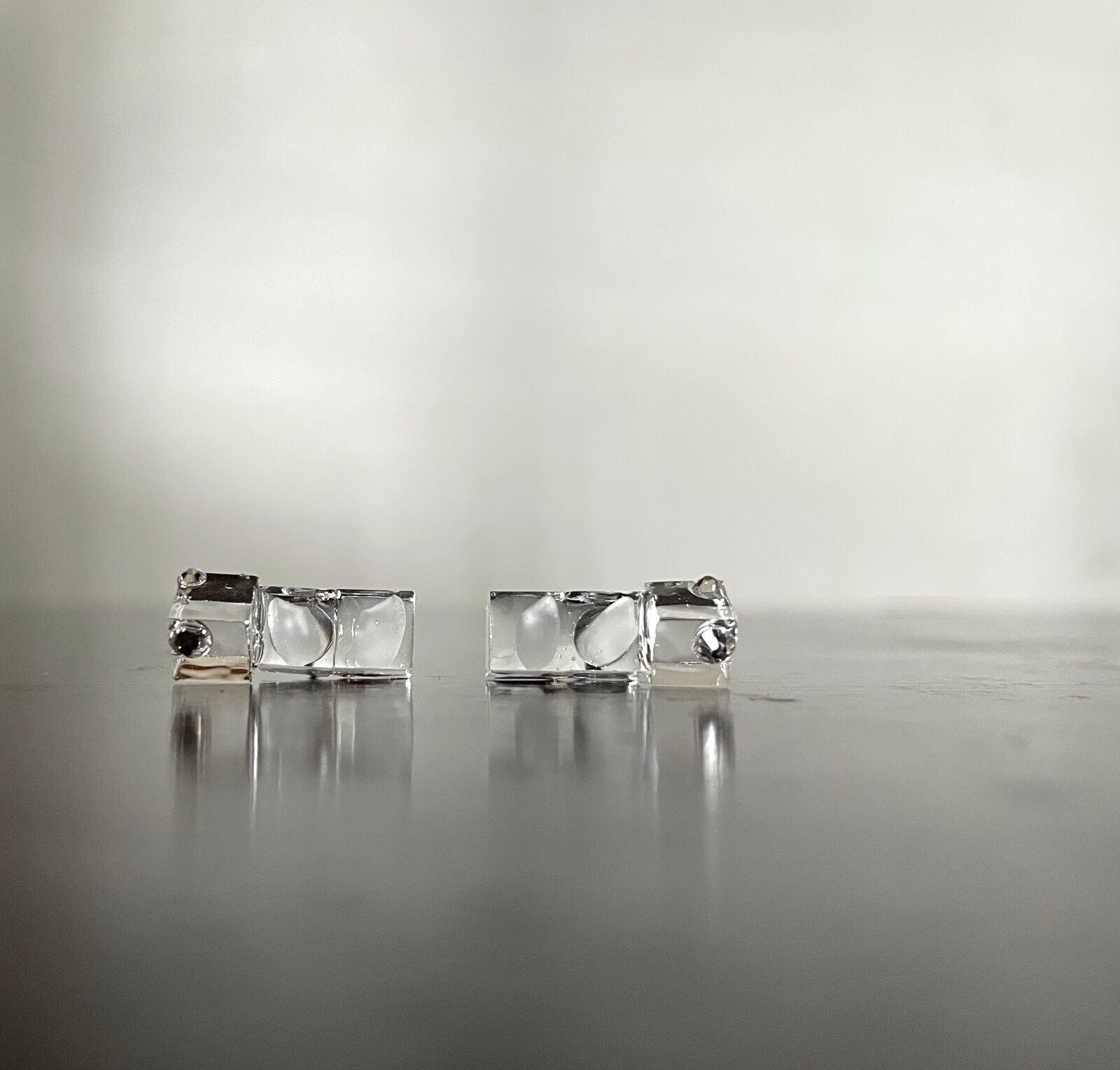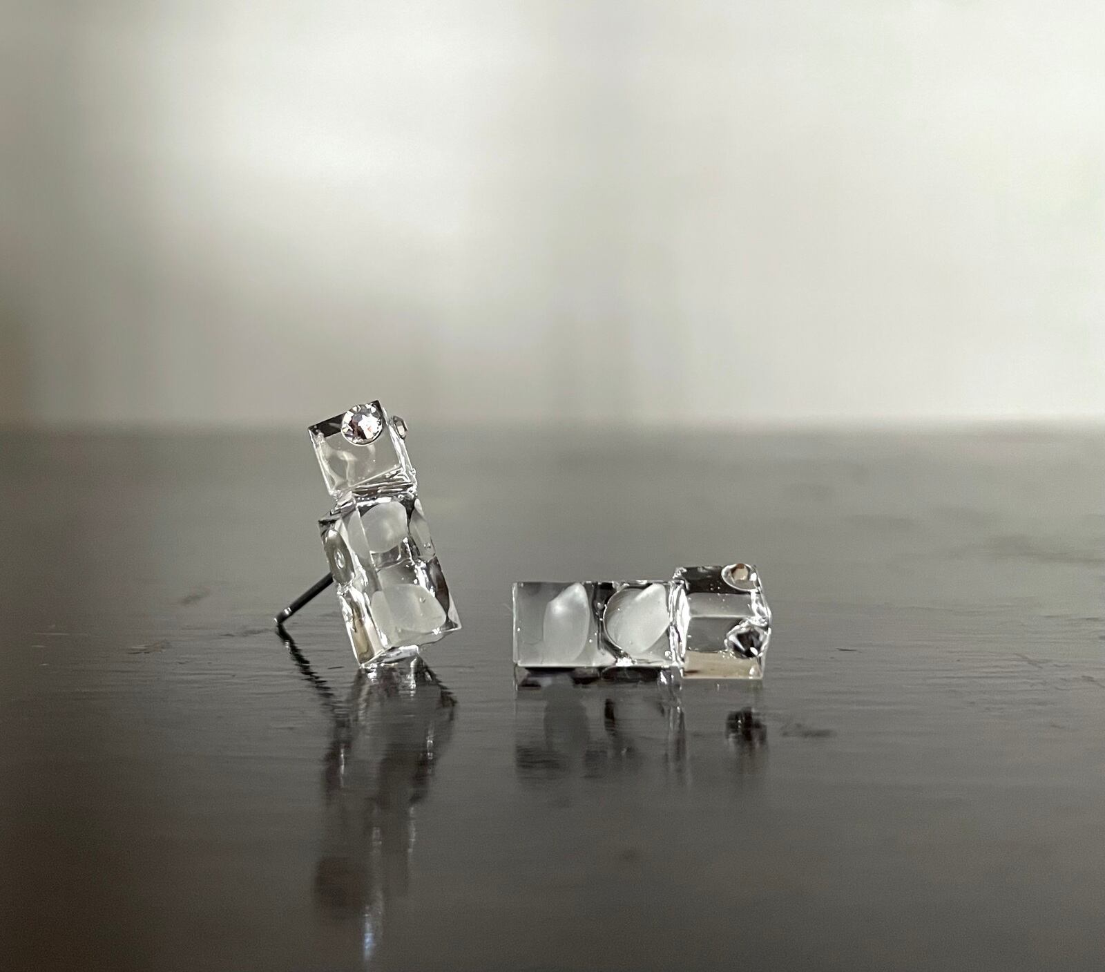 透明キューブとスワロフスキーが光を受けて