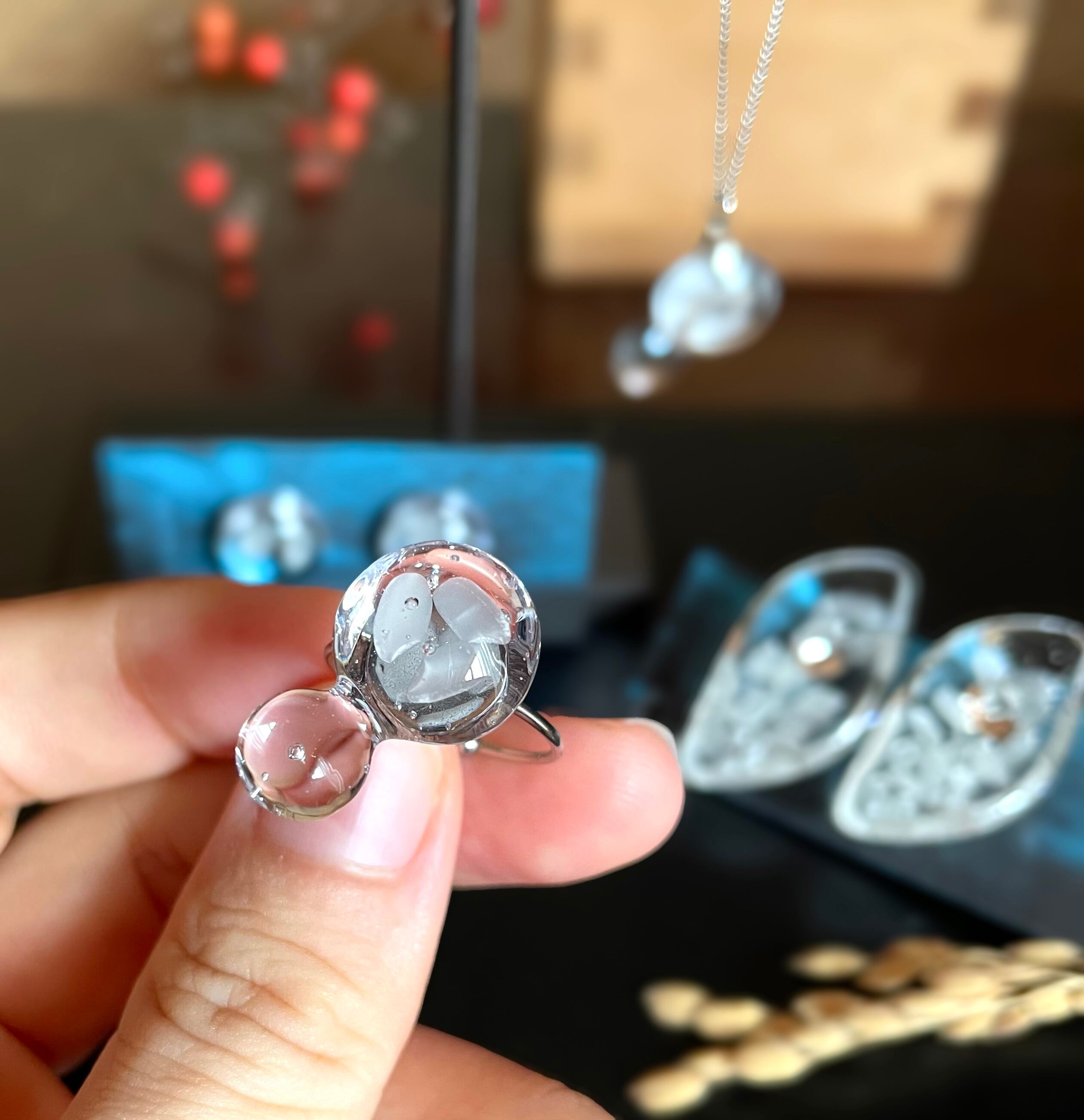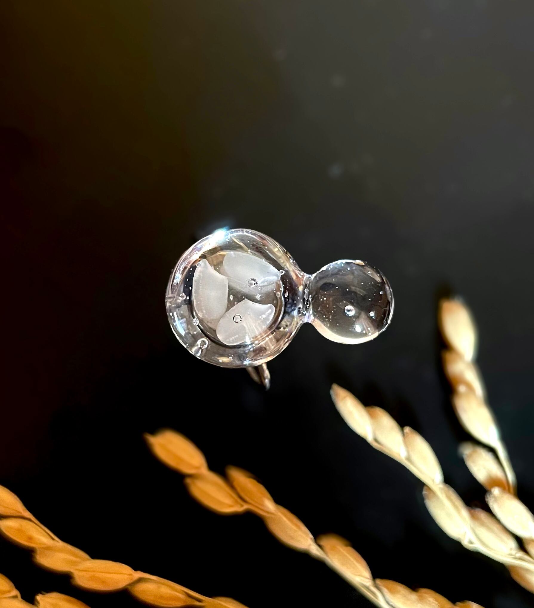 天候や使用モニターなどにより写真と実物の見え方に差が出る場合がございます。レジンの気泡は美しさの要素と考え残しています。