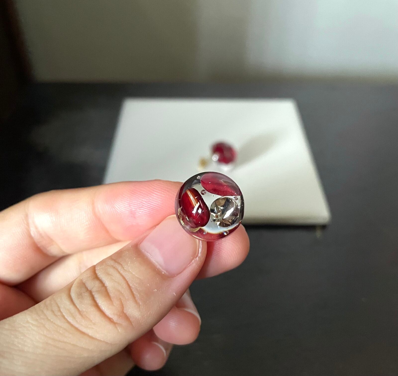 天候や使用モニターなどにより写真と実物の見え方に差が出る場合がございます。レジンの気泡は美しさの要素と考え残しています。