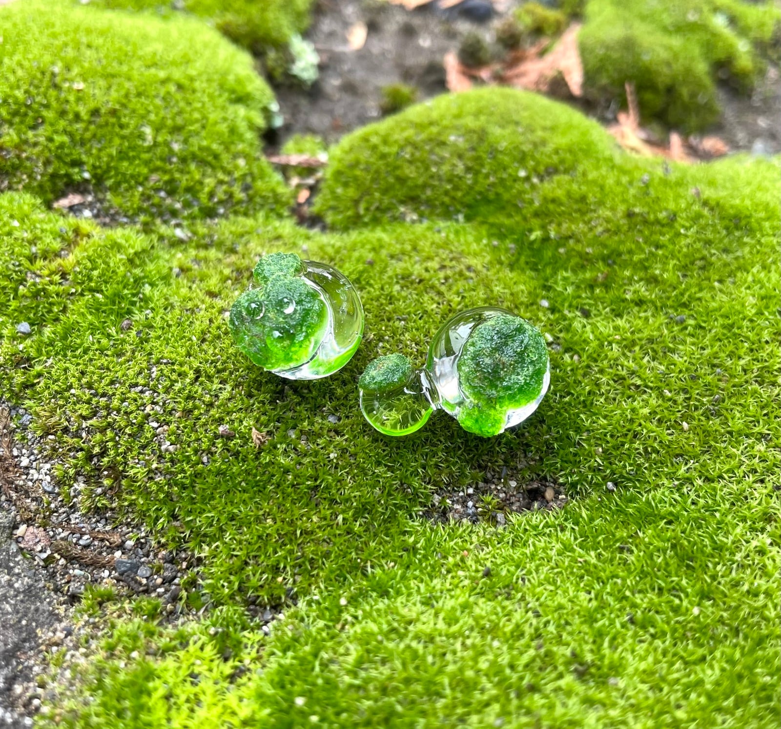"水滴に苔が生えたらおもしろいな"
