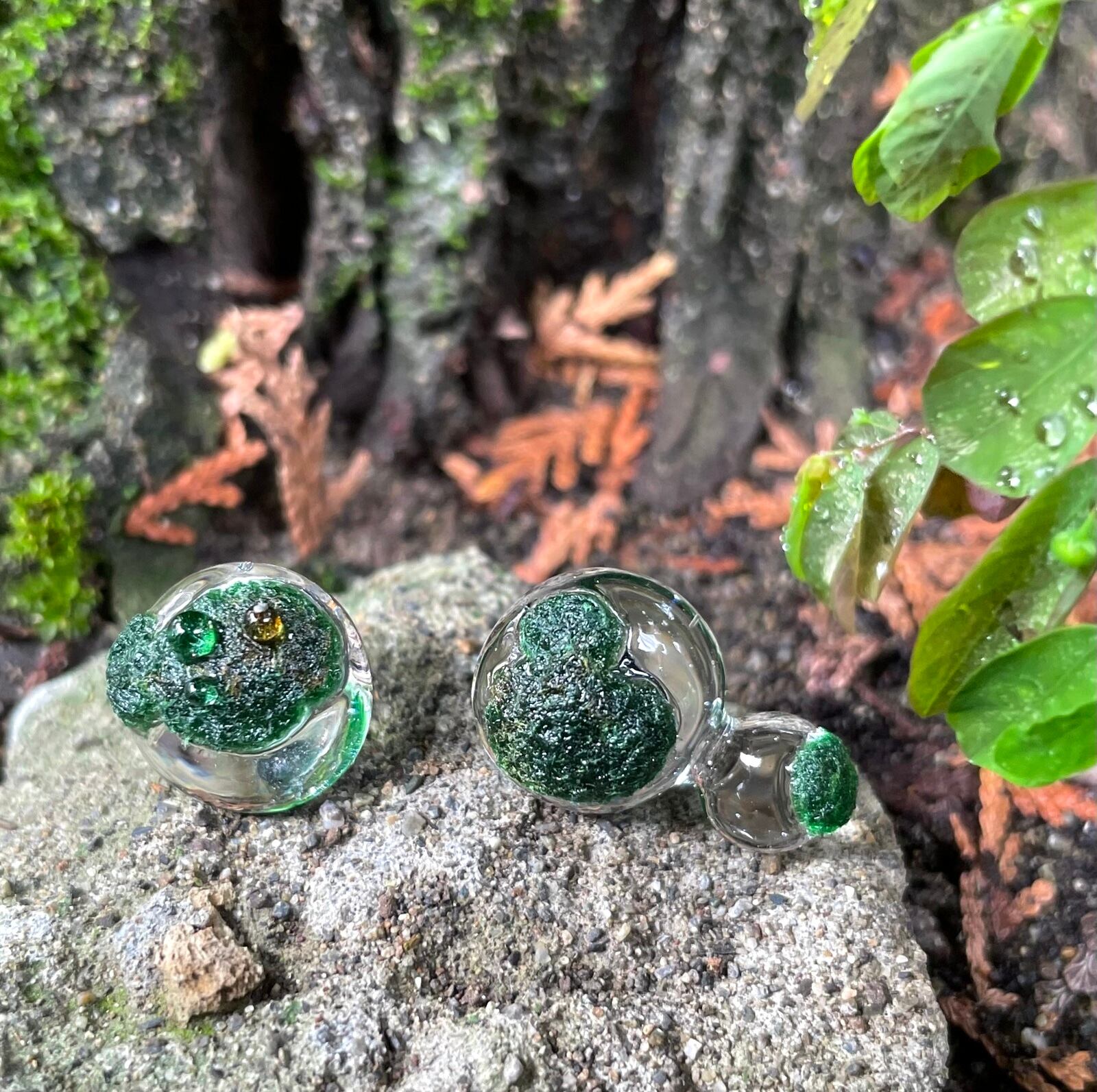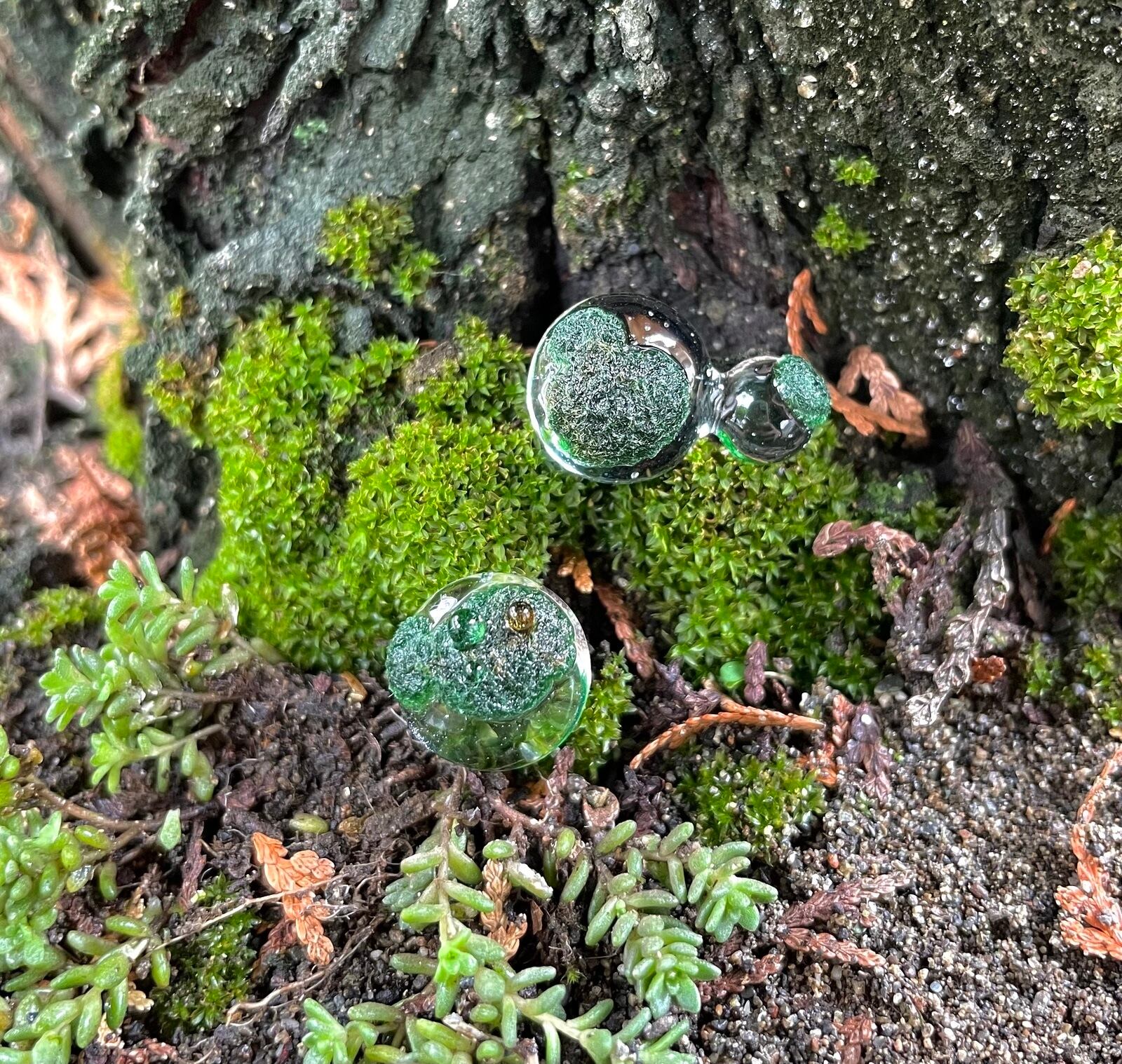 "水滴に苔が生えたらおもしろいな"