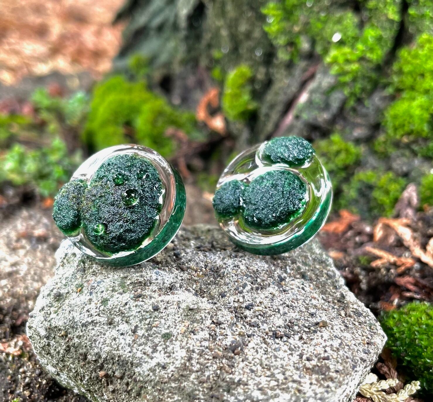 こんもり苔の丸ピアス 深色(パーツ変更可) kokemusu-コケムス-
