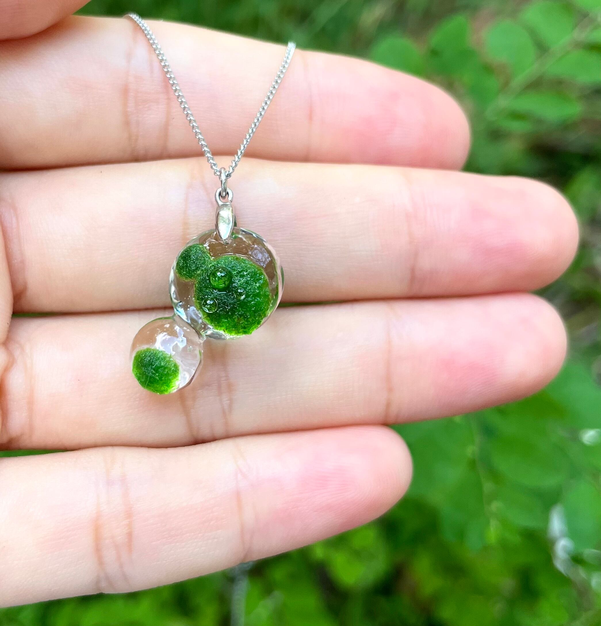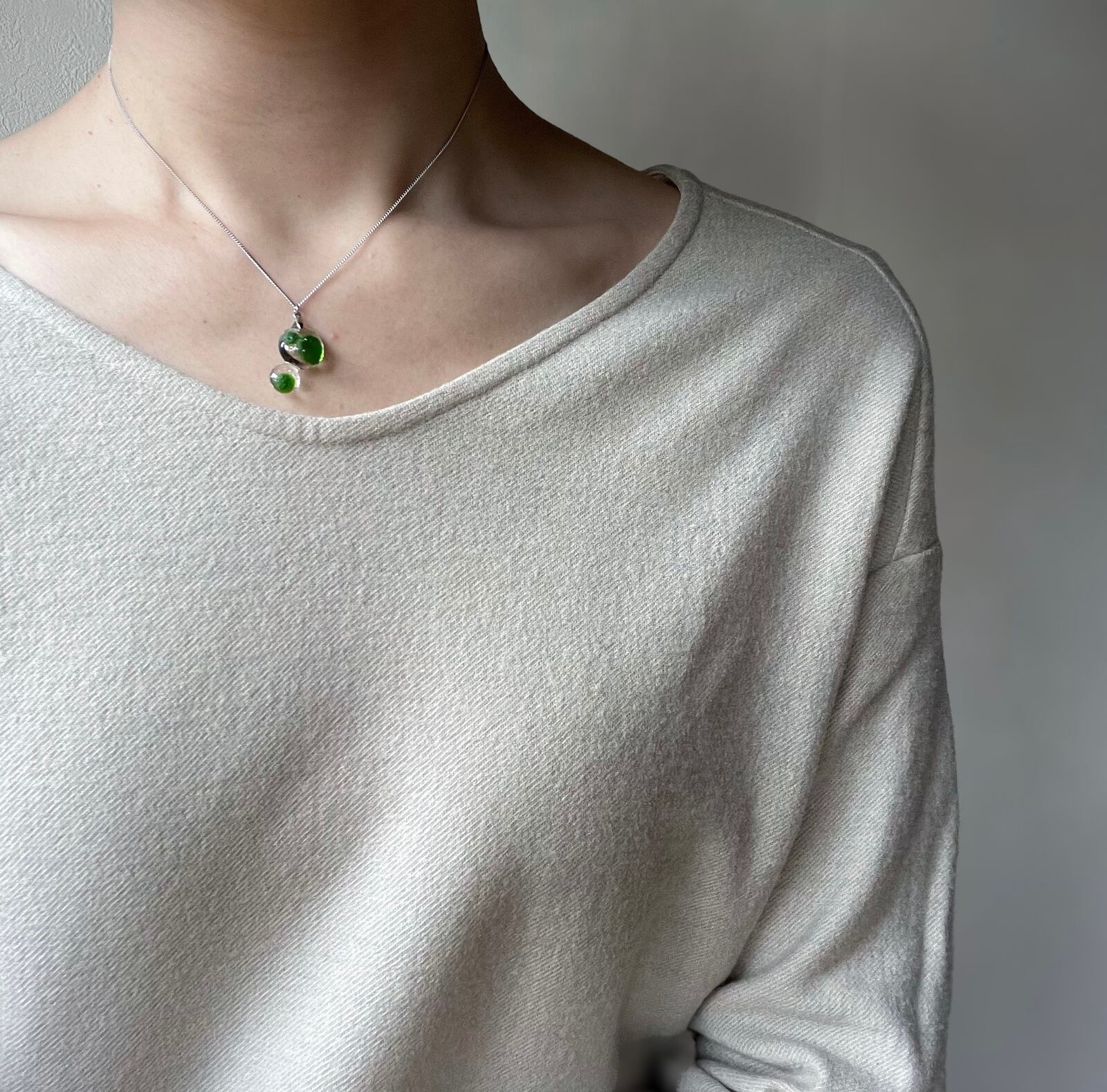 ポタリ、苔生す水滴のネックレス 明色 kokemusu-コケムス-