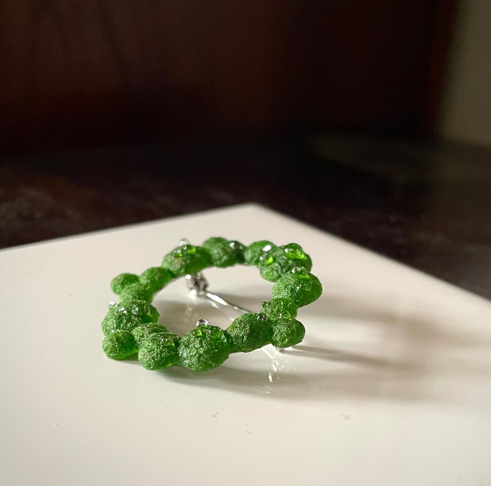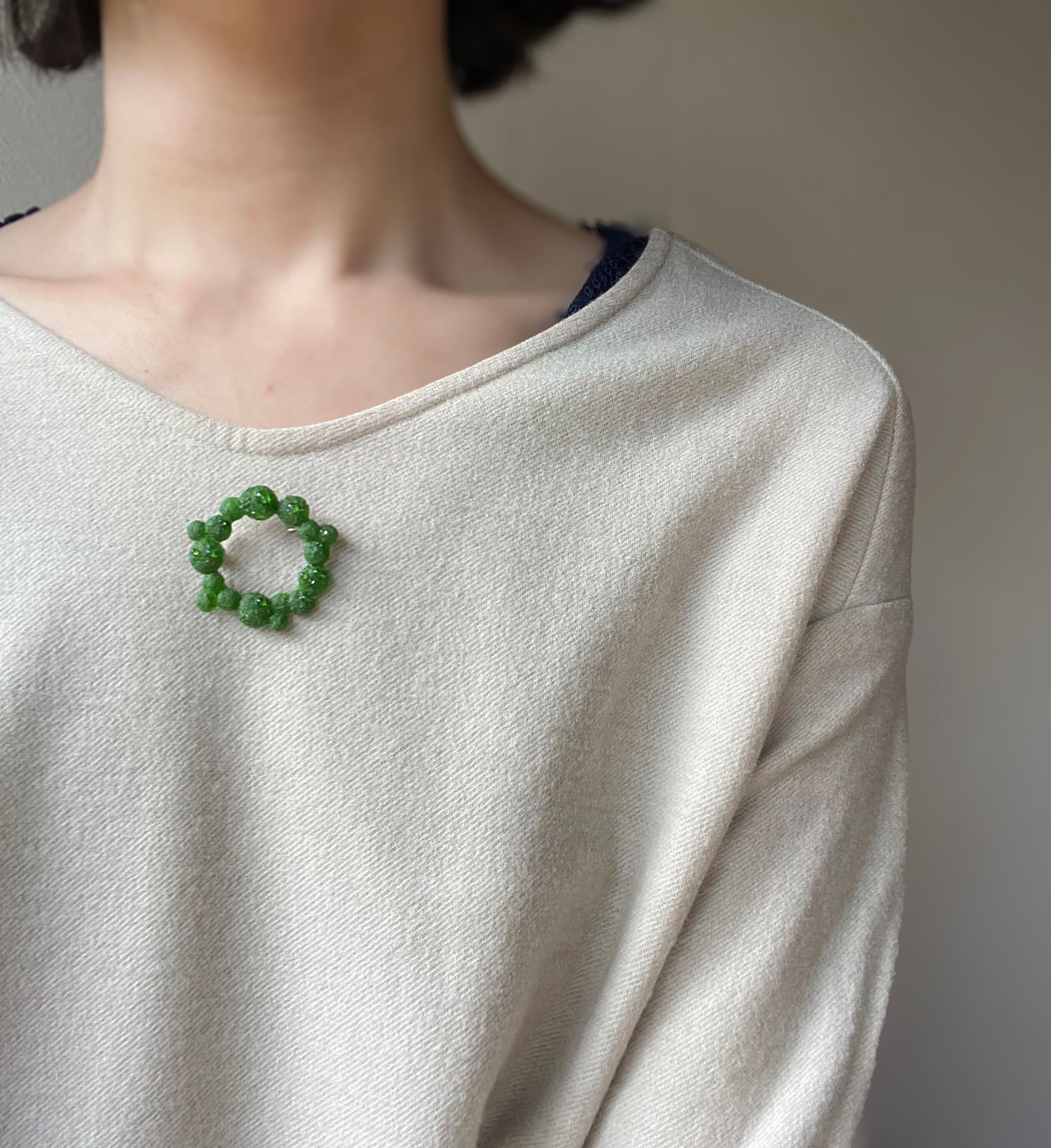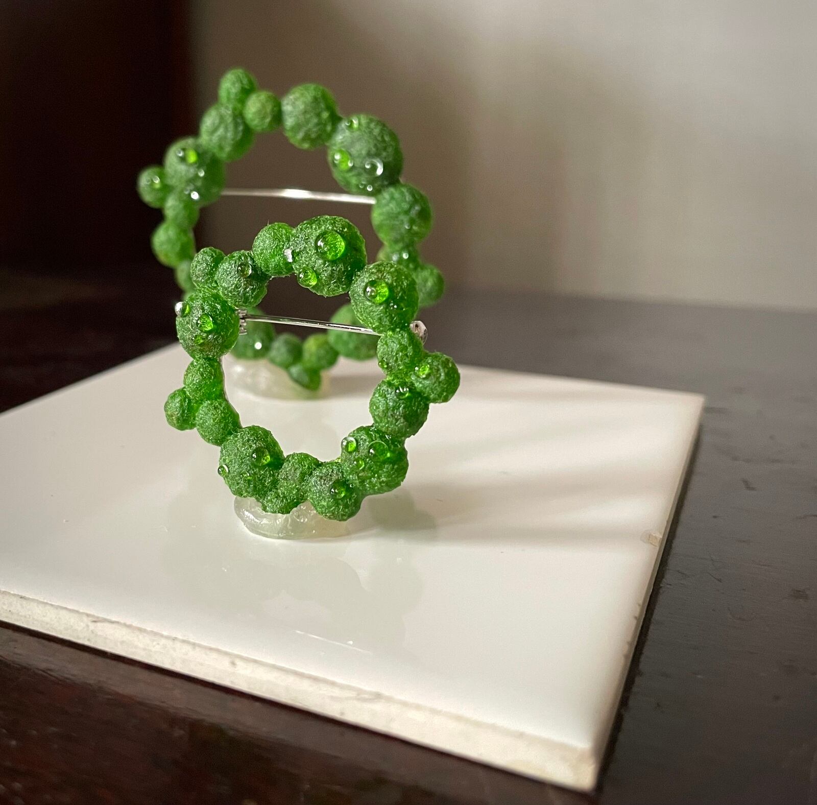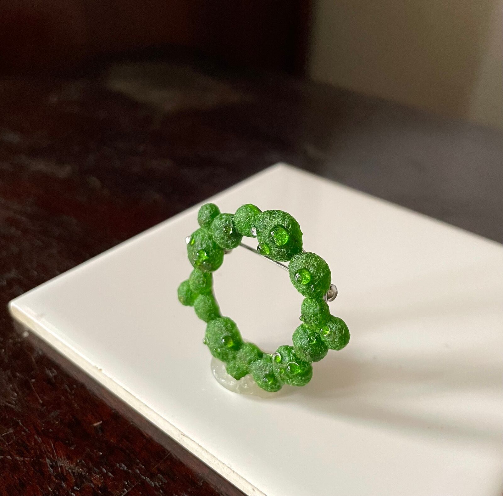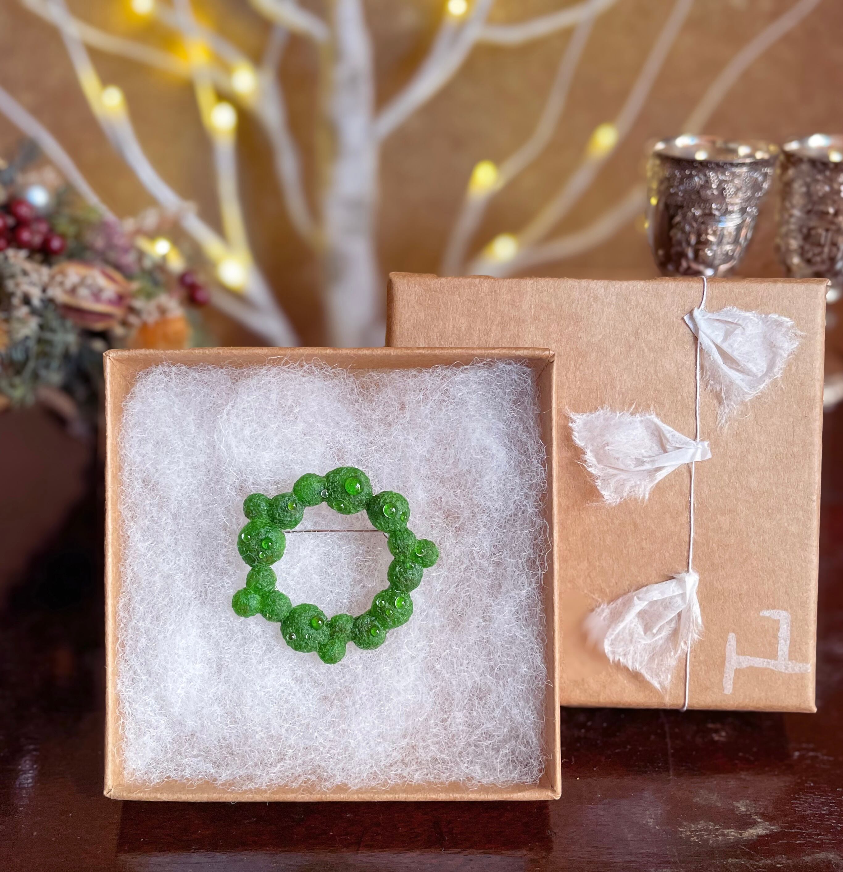 水滴たっぷり 苔のミニリースブローチ(明色) kokemusu-コケムス-