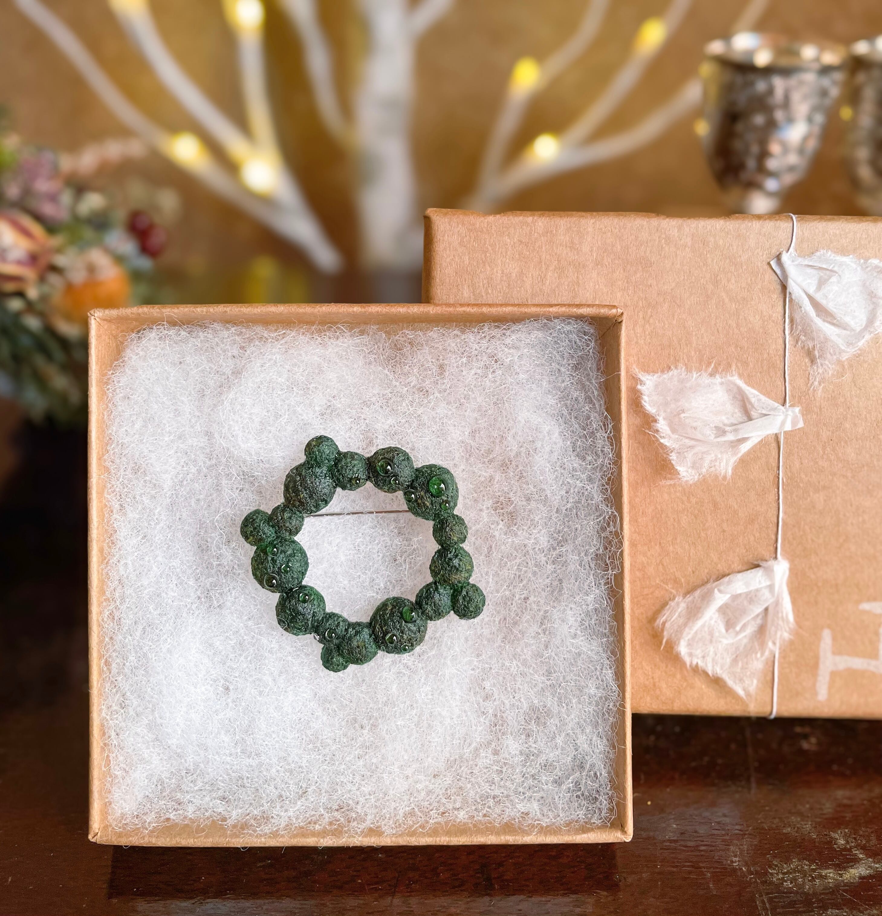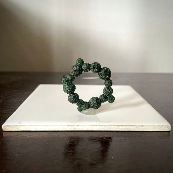 水滴たっぷり 苔のミニリースブローチ(深色) kokemusu-コケムス-