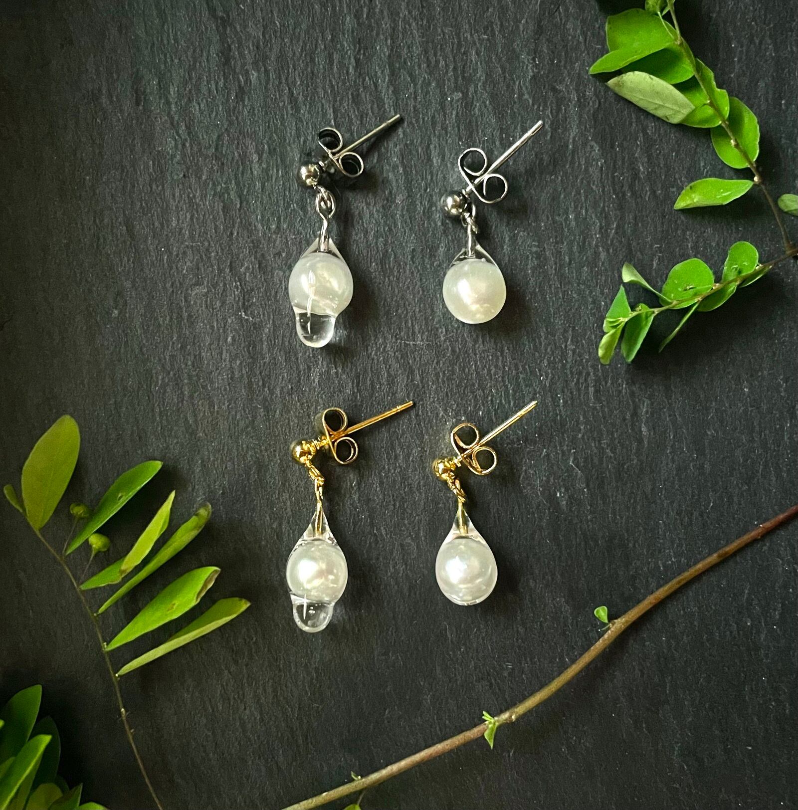 潤いまとう 淡水パールの露ピアス/イヤリング ショート ※選べる金具カラー(ゴールドorシルバー)